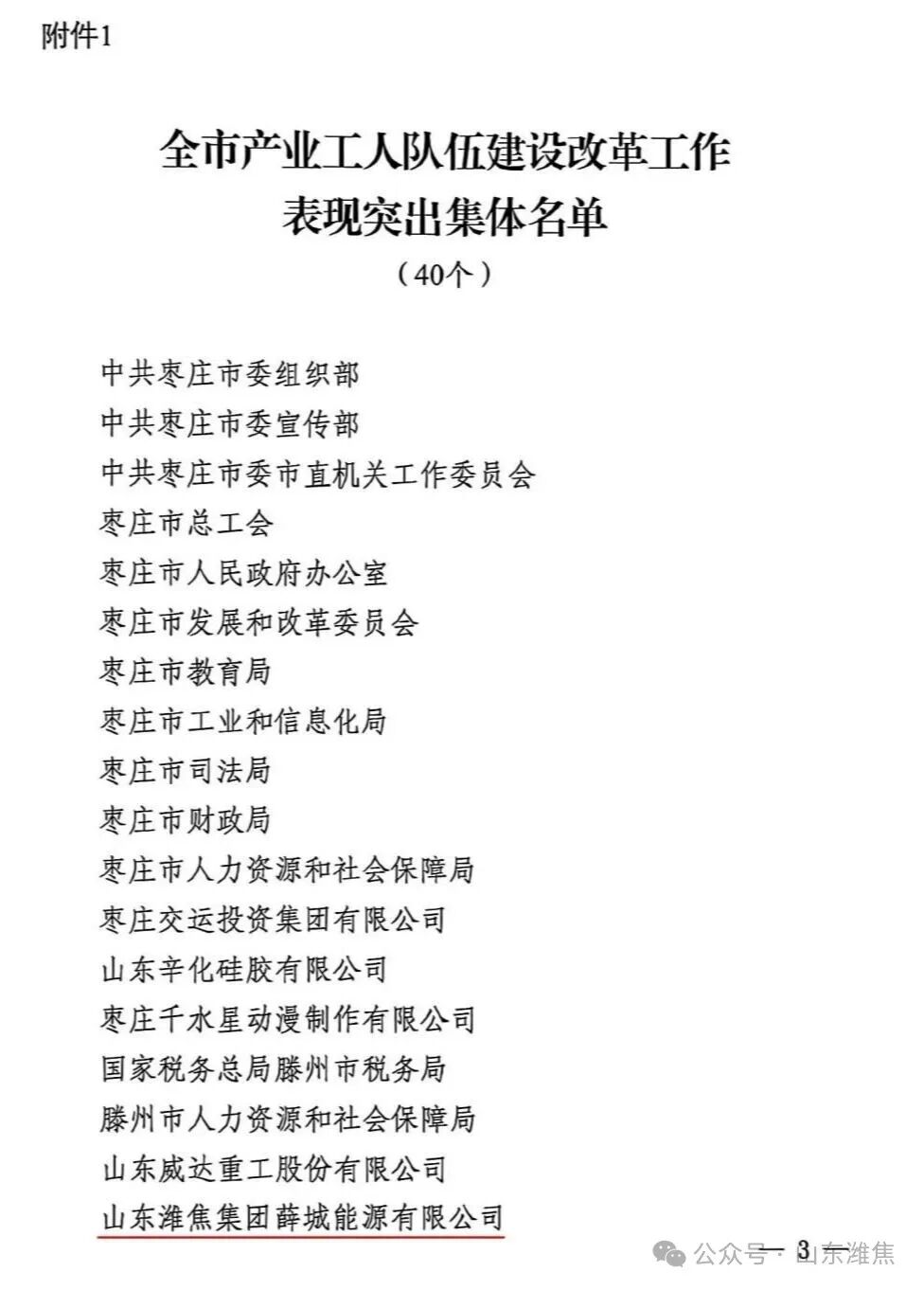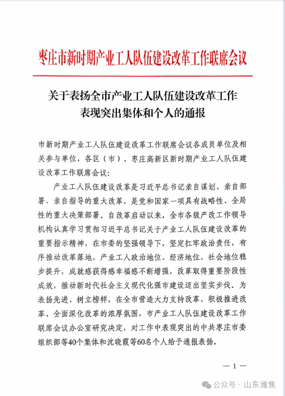 11月27日,枣庄市新时期产业工人队伍建设改革工作联席会议公布表彰名单,薛城能源公司荣获“枣庄市产业工人队伍建设改革工作表现突出集体”称号。
